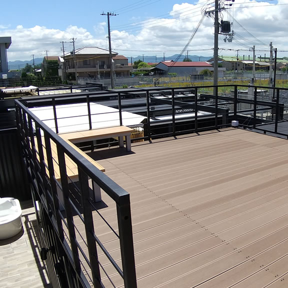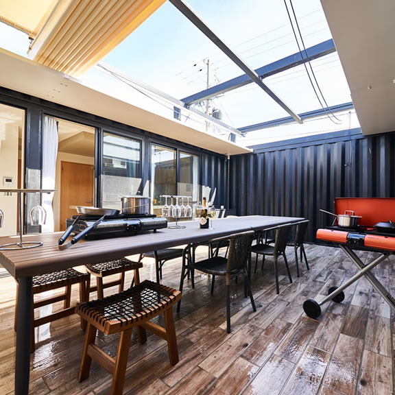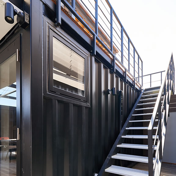 コンテナの天井を活用した展望デッキ